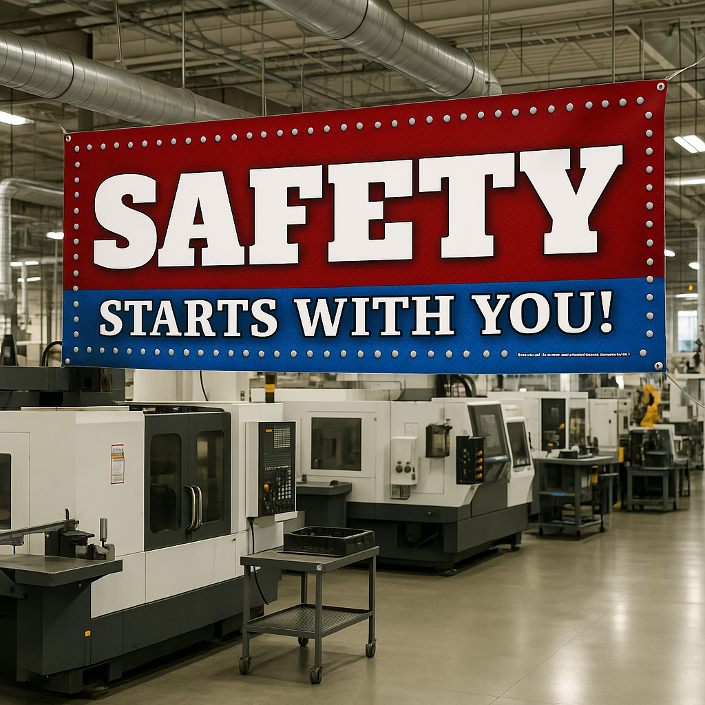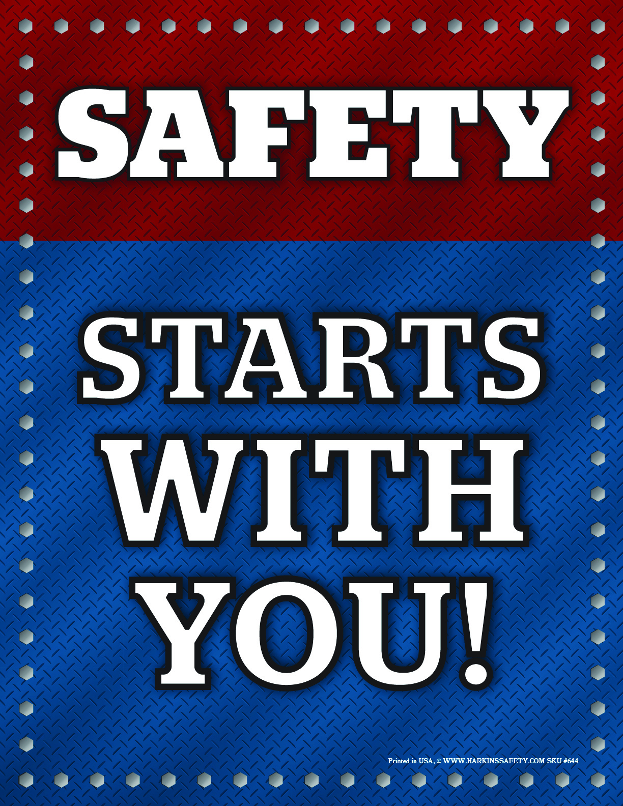 Safety Starts with You! This message is loud and clear and puts employee safety responsibility square on individual’s shoulders. Safe behavior starts with safe decisions. Safe decisions start with You! Harkins Safety recommends hanging this on your factory wall, in a large hallway heading to a breakroom or restroom, or in the breakroom where employees can read the message and begin repeating it to themselves.
